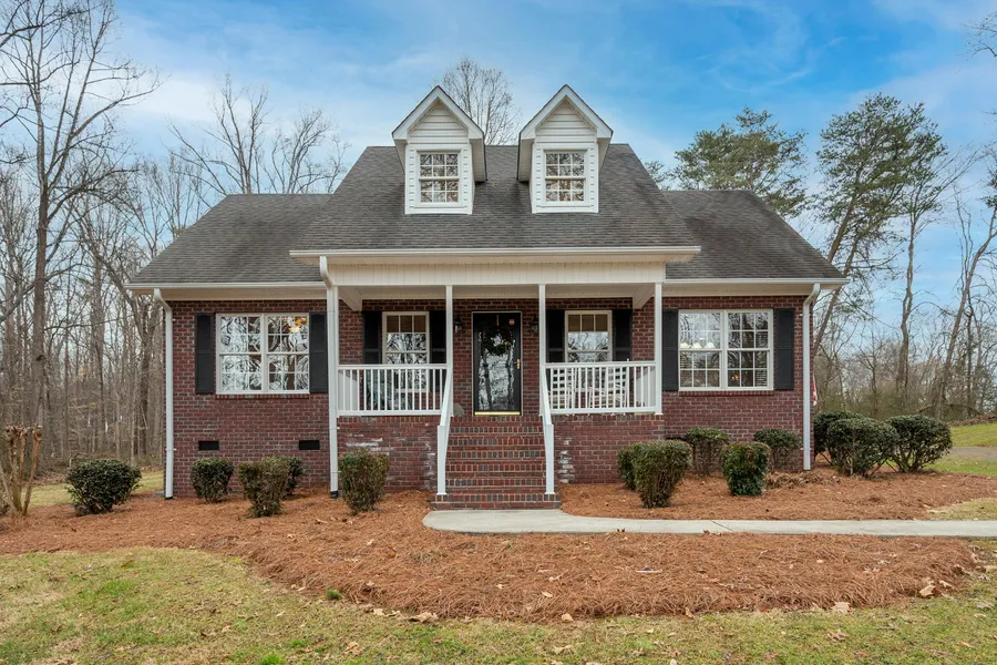 Adorable cape cod on nearly 2 private acres with gorgeous curb appeal! Low voltage landscaping lights show off this beautiful exterior! Stunning hardwoods throughout the main living area with open floor plan, this home features a gas log fireplace with blower in the living room, kitchen island and pantry for plenty of storage, and main level primary and secondary bedroom suites. Laundry room is on main level and has cabinets and sink for added convenience. 3rd Bedroom with full bath is on 2nd level. Covered and uncovered back patio space is perfect for entertaining. Back yard is partially fenced.