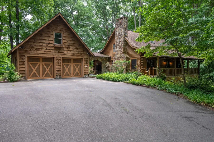 Looking for a peaceful private setting? This gorgeous log home is nestled on a wooded 1.81 acres, overlooking a beautiful open pasture with nature surrounding the property. Charming character in combination with the rustic feel of the logs makes this an inviting and intriguing home. Located with convenient access to Hwy 421 which makes for close proximity to dining and shopping. Romantic front porch for breathing in the fresh air. As you step inside the home, a beautiful stone fireplace is the focal point in the living room. The sunroom is a great space for relaxing and enjoying a cup of coffee in the morning while embracing the scenic view. The basement offers the flexibility of guest quarters when needed with a full bath, a small kitchenette, and a walk out to the outside patio area. There are two additional detached buildings, one for storage and one for a She shed. The detached gara...