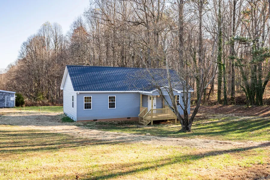 NEW PRICE - New construction home in rural setting of Yadkin County with a scenic view. Covered front porch with vinyl plank flooring throughout the home. Ceiling fans in living room, dining room, and bedrooms. Kitchen has island and stainless-steel appliances. Primary bedroom features a large walk-in closet, dual vanity, and walk-in shower. Large deck overlooks wooded area. Storage building for lawn care items. No restrictions and low county taxes.