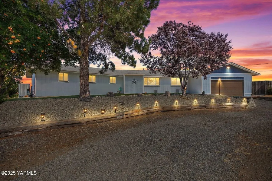 Welcome to this beautifully updated 5-bedroom, 3-bathroom home offering 3080-sq. ft. of versatile living space on 5 private acres in the peaceful countryside. Thoughtfully designed with both comfort and function in mind, the main level features an open-concept living room, a spacious kitchen perfect for gathering, and a convenient laundry area. The primary suite is a true retreat complete with a full en-suite bathroom featuring double sinks, dual shower heads, a large walk-in closet plus two additional closets, and a private balcony overlooking the in-ground pool. The daylight basement adds even more flexibility with a large family/rec room, two bedrooms, a full bathroom, utility room, and a bonus room that could serve as a sixth bedroom, office, or a home theater. Additional highlights include an updated electric forced air/AC heat pump system (installed in 2020), a circular driveway offering plenty of parking, and a 2-car oversized attached garage. Enjoy summer days by the in-ground pool with panoramic views of the Yakima Valley. The property also features a partial horse setup and ample space to explore, relax, or entertain. A rare opportunity to enjoy country living with modern updates, privacy, and room to grow!