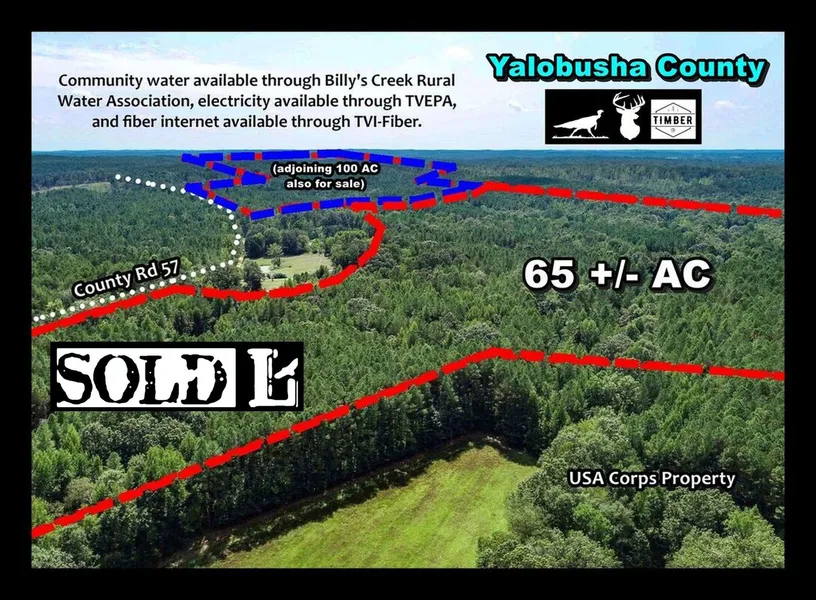 This 65 +/- AC tract is being split from a larger 171-AC listing, but the adjoining 100+/- acres is also available combined or separately. There's a new road system all through the property, and a new entrance on County Road 57 (Brooks Road). There's one well-established food plot on the property, and a new plot was made last year tucked in the hardwoods for a perfect little bow spot, too. Two power lines cut through cr...