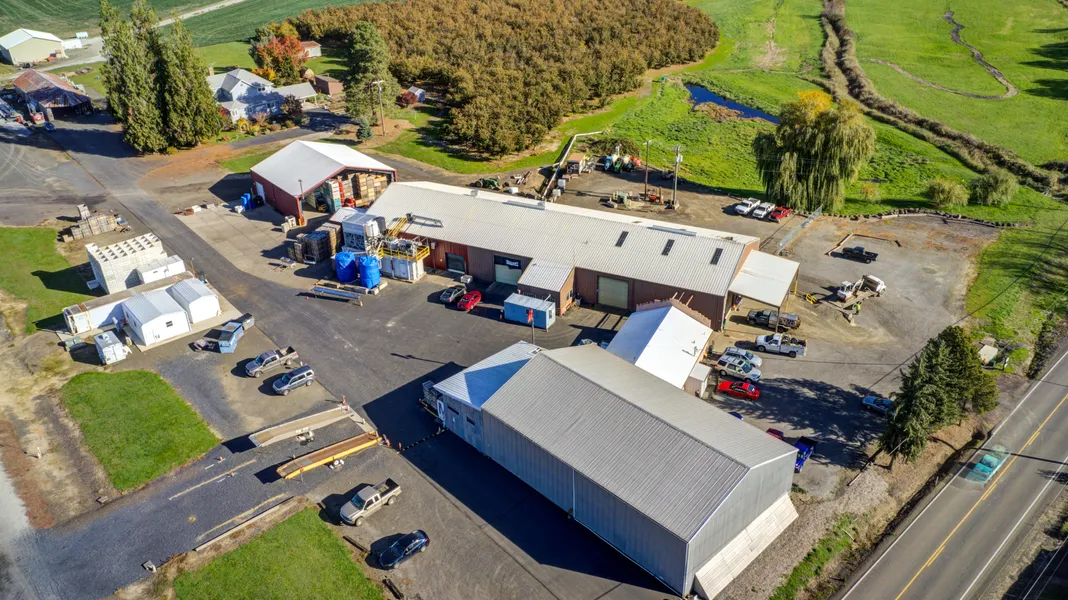 Ideally situated in heart of Oregon's farming and vineyard community, this rare offering of 3.23 acres of industrial zoned property provides highly adaptable shell facilities. Thoughtfully designed for harvest processing, the various structures provide potential to accommodate extensive bottling equipment, cold storage for fruit or fermentation vats/barrels, regional fruit processing, packaging as well as functioning as centrally located shipment hub for access and distribution. Amenities include: 600/660 amps, 110/220/460 volts, three city water meters, annually serviced septic and a permitted waste-water lagoon. Buildings include: 12000sqft main processing warehouse with coated and partially contoured floors with drainage, 3600sqft warehouse with mezzanine shop, 4000sqft warehouse, 1500sqft storage room, and shed. Ample warehouse space, adaptable to customize and scale for equipment needs, and generous lot size for employee parking, facilities expansion and shipping container storage. Loading dock and easy semi access off a rural highway. Fantastic investment opportunity for regional grape processing and bottling facility. Lease option potential at $8.04/sq ft.