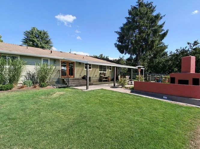 Wonderful 1960’s built home next to year-round creek! Abundance of natural lighting and fantastic amenities. 4-car garage plus additional 4-car shop space, gate into property, covered patio, fire pit, chicken coop, horse stall and more. Kitchen amenities include custom cabinets, granite tile counter tops and the following stainless steel appliances: microwave, dishwasher, counter-depth refrigerator. French Doors in dining room & master bedroom! Master Suite w/walk-in closet, ceiling fan and skylight. Master bath w/jet tub, large walk-in shower w/double shower heads, double sinks, and plenty of bathroom storage space. Vaulted ceilings in both master bedroom and bathroom!