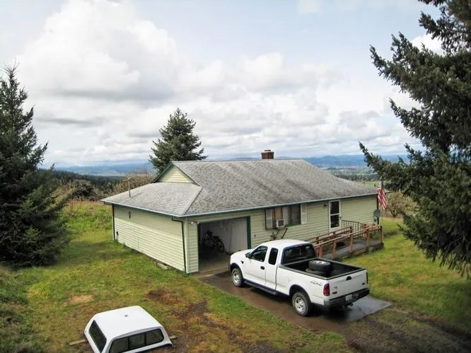 Cozy and move-in ready 1-level home in Amity! 4.85 Acres. 1024 Sq Ft, 2 Bedrooms, 1 Bath. Easy flowing Floor Plan and extremely comfortable Living Spaces. Large 24x30 Shop with Alarm & Wood Stove. 1 Car extra long Garage. Fantastic Mountain & Valley views from all around the property! Kitchen with Range, Refrigerator, Dishwasher, Disp. Anderson Windows, double-pane w/screens.