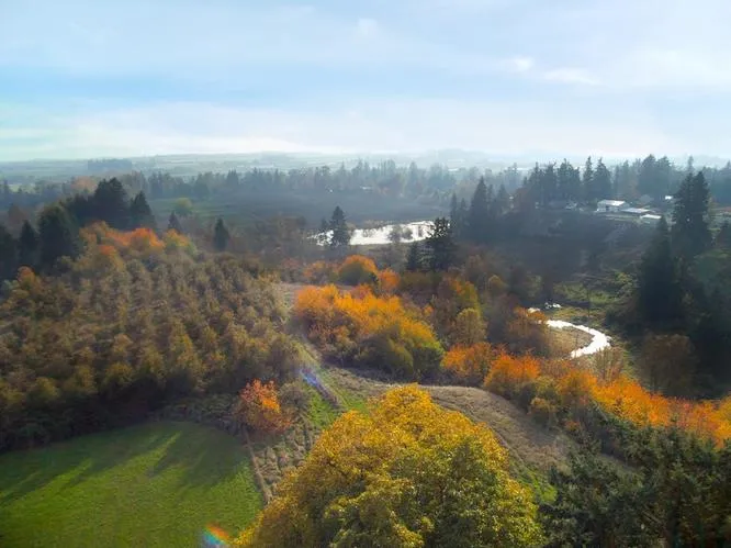 Country property in Willamette Valley with vintage 2 story house on 26.3 acres. Wooded and sloping land with charming Hess creek. A picturesque barn with fruit and pine trees make this property remind you of days gone by when times were more simple. Convenient location and set back from hwy. Close to town. New septic field and well pump.