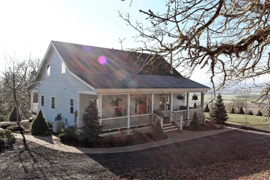 Spectacular views, gorgeous park-like setting, walking trails, creek and wonderful home create a unique and quiet retreat! Vaulted ceilings, hardwoods. Custom redwood trim throughout house, custom redwood & nutmeg cabinets, tons of built-ins. Master Suite with walk-in closet, jetted tub. Living room with woodstove. Utility room with built-ins. Covered porch, enjoy year-round outdoor living and recreation. 3 car detached garage