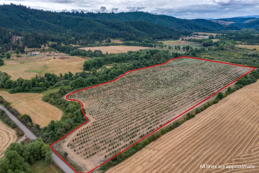 Live and farm in the beautiful Willamette Valley nestled between the coast and city conveniences! Stunning views of the coastal range. Approximately 32 acres of ~5 year old Wepster Hazelnuts entering their production years. Trees are space 10' by 20' with 208 trees/acre. Entire parcel tiled with 8' deer fencing and gated. Lot configuration and potential buildability pending lot line adjustment. Buyer to do own due diligence regarding buildability, productions methods and orchard management.