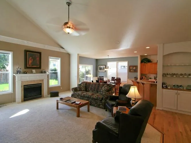 This beautiful home is awaiting your personal touch! 2093 Sq Ft 2005 built home with 3 bedrooms + den/office and 2.5 baths. Located in an ideal neighborhood! Fantastic open floor plan boasts numerous high-end amenities including spacious main level master with soak tub and double sink vanity, 9 ceilings, French doors, hardwoods, wainscoting, built-ins, vaulted ceilings and much more! Spacious kitchen with eating bar and pantry. Large, fenced backyard with covered patio and sprinkler system-great entertaining space! Lots of storage, 3 car tandem garage and attached storage shed to code. To see it is to want it!