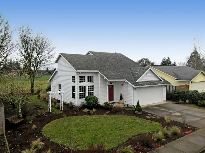 You've found your dream home! Meticulously kept, master on main, vaulted living room. Kitchen w/range, built-in microwave, dishwasher, disposal, open to dining & living. Double paned vinyl windows. Beautifully landscaped with garden oasis, fruit trees, back patio overlooking field. Affordable excellence and move-in ready. Great neighborhood, 2 car attached garage.