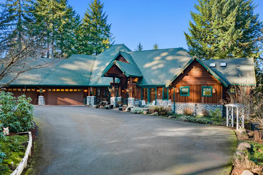 Incredible Craftsman style custom home built with no conveniences or luxuries left out. Open floor plan on the main with 22 ft vaulted ceilings and floor to ceiling fireplace. Professional kitchen with island eating bar, top-end appliances, and eating area with stunning views. Incredible owners suite and office on main. Family room down with full bar/kitchen, wine cellar, exercise room & library/lounge. Heated pool with slide, 42x56 3-door shop/barn with 2 horse stalls, office & full bath. Pasture & corral. See video!