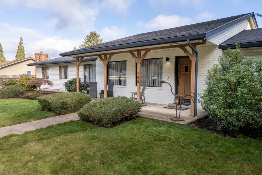 Exceptional location in Wine Country, single level living on one of the largest lots in Michelbook's 4th Addition! This meticulously maintained 2000-sqft. residence rests on a beautifully landscaped 0.35-acre corner parcel, offering both privacy and standout curb appeal. The home's custom-built design is situated on a quiet cul-de-sac street and features a timeless exterior crafted from quality materials, including brick and cedar. With clean lines and form, this residence seamlessly blends with its elegant, mature landscaping. Inside, the open floor plan and 14-ft vaulted ceilings with 12-in wood beams create an airy, connected space. Sunlight floods through large double-paned metal windows, while oak hardwood floors in the entry, reading room, and hallway provide a warm contrast to freshly painted light walls. The cozy reading room features a textured brick accent wall, a fireplace area, and direct access to a private backyard patio with a fire pit, perfect for relaxing or entertaining. The spacious kitchen is designed for both function and style, featuring black and white accents, a bright skylight, a convenient walk-in pantry, and painted wood cabinetry that complements the custom-finished countertops. A dedicated dining room off the kitchen and hallway makes it easy to entertain family and friends. The primary suite, located on the south side of the home, offers a serene retreat with a spacious bedroom, an ensuite bathroom, and three closets. Additional bedrooms are located on the north side for enhanced privacy. The home's footprint extends to approximately 2691 sqft. including an expansive 2-car garage with additional space for a golf cart, complete with a roll-up door leading to a fenced side yard. Additional features include a half-bath in garage, illuminated closets, an invisible dog fence encircling the property, a side yard with garden beds for vegetable growing, and a private, inviting backyard. The listing agent has ownership interest in the property.