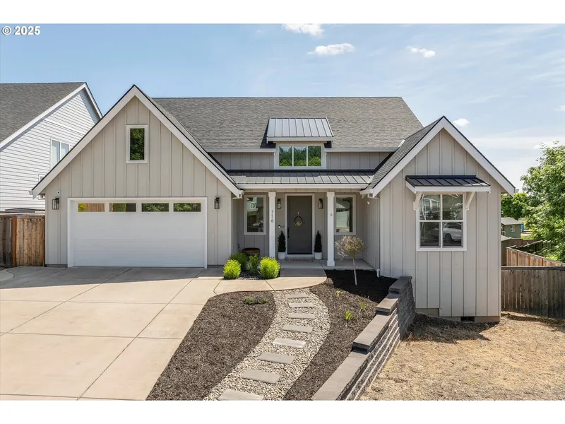 This stunning move in ready home is waiting for you. Lovingly cared for and gently lived in, is stunning-it looks like it came from a magazine. A .36-acre level lot, fenced yard with gate on side yard for trailer/boat parking creates privacy yet in a neighborhood feel. Creek and nature are right next door. One level, 3 bedrooms+den/could be 4th bedroom or flex space. Oversized great room with fireplace, vaulted ceilings creates an open concept bright feel. Kitchen has great storage, spacious island for seating, is well organized and beautiful. Primary suite with vaulted ceiling, walk in closet, soaking tub and double sinks gives a spa-like feel. 2 additional bedrooms and full bathroom gives space for kids or guests. Slider from dining room to beautiful, covered patio opens up to a fantastic backyard seating area with fire pit, play structure, a great place to hang out summer nights to come. There is even space for dogs complete with turf to minimize mud. Sprinklers in backyard and a side yard with a good sun side to grow a garden - there is even a storage shed! Oversized garage with great storage and extended driveway for guest parking. Don't miss the great West Hills neighborhood park a short walk away. Welcome Home-You have to see this!