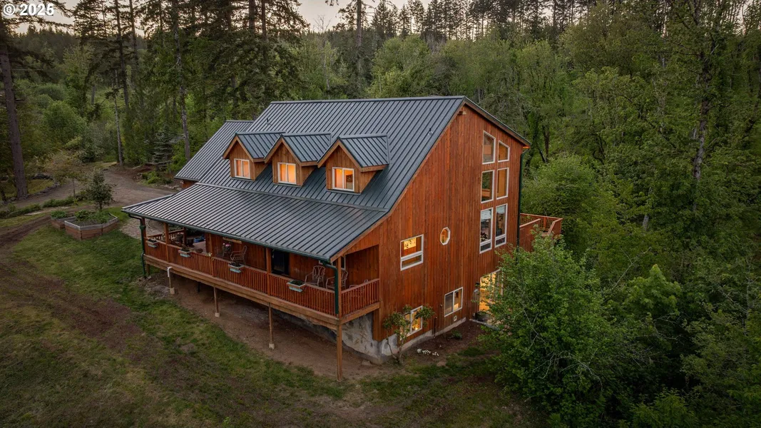 Welcome to classic Pacific Northwest living on nearly 9 private acres, perfectly set between the Oregon Coast and Willamette Valley wine country. Surrounded by trees and sweeping natural beauty, this expansive three-level home offers over 4,000 sq. ft. of living space designed for gathering, relaxing, and enjoying the outdoors. The foundation has been fully renovated and certified, giving this home strength and stability to match its beauty. Inside, soaring ceilings and walls of windows frame the forested setting, while a dramatic floor-to-ceiling rock fireplace anchors the great room. Hardwood floors and custom woodwork add warmth and timeless character. Just off the main living area, an enclosed sunroom with a 20 foot pool and spa invite year-round enjoyment. Radiant heat throughout the main floor = low power bills! A gorgeous wood staircase leads to an open second level overlooking th...