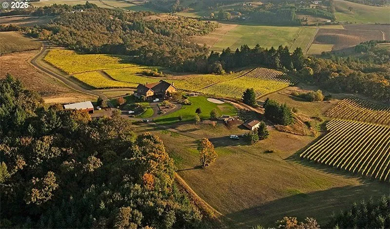 Incredibly rare opportunity to own a profitable 9 room inn, tasting room & event center / wedding venue! Located within the McMinnville AVA, which is experiencing the fastest-growth in the Willamette Valley, this 49.6 acre property features panoramic views of the Cascades & the valley while being conveniently located 15 minutes from downtown McMinnville. Roughly one hour from Portland, many event rental clients & vendors are drawn from the metro area. With nine luxury suites, the property offers a truly rare all-in-one destination for visitors to immerse themselves in Oregon wine county. 23 acres are planted to vineyard with 17.5 additional acres plantable. South / southeast aspect with elevation range of 550'-740'. The soils are deep & well drained from the Steiwer and Willakenzie Series. The property features 19,556 sq. ft. of structural improvements: -9,450 sq. ft. nine suite inn and tasting room, built in 1989 & extensively renovated from 2013-2015. -3,869 sq. ft. event center, built in 2016 and features a large open space with glass roll up doors leading to 2,500 sq. ft. of patio space + catering kitchen, wine barrel storage and a bar. -800 sq. ft. dedicated restroom building for events, with 4 single bathrooms + a storage room with garage door. -2,370 sq. ft. manufactured home w/ 871 sq ft. attached garage, 4 bed, 3 bath, built in 2007. -2,196 sq ft. 36'x61' barn for equipment storage. -Ample guest parking with a large overflow gravel lot. Secured water rights, which are increasingly rare, ensures reliable access for vineyard & frost protection, making Youngberg Hill stand out in a market where water availability is tightly restricted. This is a rare opportunity to expand on a beautifully built & well maintained hospitality property. is a proven destination property offering the next owner the opportunity to continue the legacy, establish a home for an existing brand or launch a new venture within the dynamic Oregon wine community.