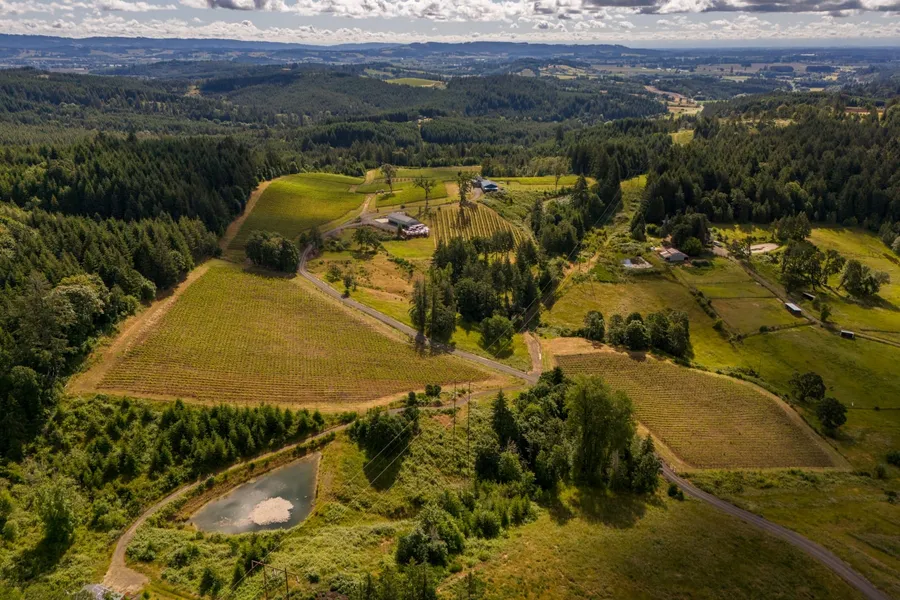 Discover an extraordinary opportunity to acquire a remarkable 62-acre vineyard estate located in the esteemed Yamhill-Carlton District AVA. Turn-key operation featuring a 22.6 acre vineyard, (27 acres in aggregate) in well-drained volcanic soils of Saum Parrett Complex, at 500-600 feet elevation, maintained to produce some of the region's finest wines. The estate structures include a 2,520 sqft winery with a tasting room, complemented by a 2,400 sqft crush pad equipped with a drain. A large 2,600 sqft poured concrete tasting patio, adjacent to the tasting room, surrounded by vineyards, makes for a perfect visitor experience on the west end side of the winery. The residence is a comfortable Passive Built, open-living, 1988 sqft home, featuring Euroline triple-pane windows and doors, and large deck, offering stunning views of the Coastal Range to the west and the Cascade Range, including Mt. Hood and Mt. Jefferson, to the east. The 2,160 sqft utility barn and storage area feature a conditioned and insulated cold room storage area and a 3-bay, double-deep garage with built-in shop space. An additional equipment barn with solar panels installed on the roof, is located on the west side of the plot. The property is equipped with two septic systems, one for the residence and another for the winery. The estate wines have received numerous accolades, including multiple gold medals and high ratings from prestigious publications such as Wine Enthusiast. This bucolic vineyard estate offers a rare combination of natural beauty, high-quality infrastructure, and award-winning wine production potential. It is an ideal investment for existing brand, winemaker or entrepreneur looking to make their mark in the renowned Willamette Valley wine region. Business asset sold separately, please inquire for more information.