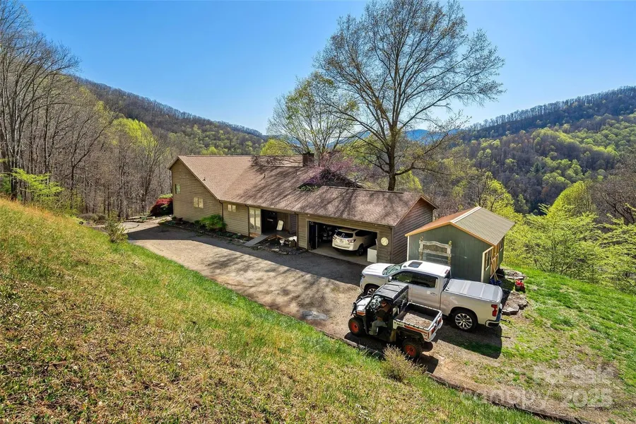 Perched at 3,117 feet in the heart of Burnsville, NC, this one-of-a-kind mountain retreat blends engineering ingenuity with artistic vision. Set on just over 15 acres and bordering 2,444 acres of protected National Forest, the home is surrounded by pastures, springs, and woodland trails-yet just minutes from Burnsville's charming town square, the Blue Ridge Parkway, Mount Mitchell, and skiing, hiking, and art experiences that make Yancey County such a destination. From the moment you step inside, the living and dining space takes your breath away. Nearly 1,300 sq ft under soaring 20-foot ceilings, this open-concept great room is drenched in natural light from eight skylights and walls of windows. Stained-glass details scatter color across the room as the sun shifts, while panoramic views of the Black Mountains stretch endlessly before you. This is a space made for imagination: set up cozy reading nooks by the windows, fill corners with indoor plants, or host large gatherings, retreats, or holidays where everyone feels part of the same incredible view. The gourmet kitchen opens seamlessly into this grand living space, designed for creativity and community. Double ovens, a gas cooktop, veggie sink, and abundant counter space mean multiple cooks can share the joy of preparing meals side by side. Whether you're a chef who loves to experiment or simply enjoy hosting friends, the scale and layout make culinary expression effortless. The main level also offers two bedrooms with adjoining full baths and closets, plus a convenient half bath for guests. The thoughtful layout provides flexible options for creating more private retreats within the open design, allowing each bedroom its own sense of comfort and character. The lower level adds even more opportunity: two oversized bedrooms, a full bath, and a massive mechanics/storage room with potential to become a secondary kitchen and living area. Perfect for multigenerational living, rental space, or a private guest suite, the possibilities are endless. A tandem two-car garage provides additional room for vehicles, workshop space, or hobby storage. Outdoor living shines here. From the expansive decking that frames the mountain sunsets, to koi ponds, springs, and blooming gardens, the property is as peaceful as it is practical. Three pastures offer room for animals, gardens, or beekeeping-truly a mini-farm and pollinator's paradise. A breezeway connects the main house to the garage, with a koi pond and sitting area along the way, perfect for quiet reflection. Recent upgrades ensure peace of mind, including new plumbing, a premium 2024 roof with storm-nailed high-definition shingles and high-flow vents, a new well pump with updated wiring, and a new storage building. This home isn't for those seeking ordinary-it's for those who want their home to be as creative and versatile as they are. With space to dream, light to inspire, and views to last a lifetime, it's ready to be loved by the next owner who sees beauty in both its uniqueness and its boundless potential.