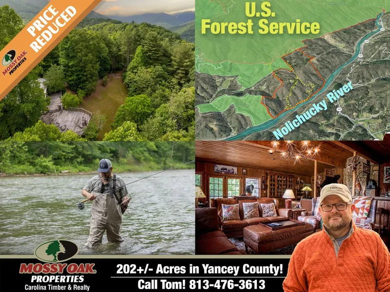 Boasting over two hundred acres nearly surrounded by USFS with almost 3/4 mile of Nolichucky River frontage, this incredible mountain property features an amazing rustic yet modern lodge with multiple outbuildings & alternate living spaces to create your very own private retreat in the heart of the Appalchian Mountains. Whether you're wanting a mountain estate or bug out property, this large private riverfront property is perfect for hunting, fishing, hiking, camping, homesteading or use as a family compound, luxurious off-grid getaway or lodge.