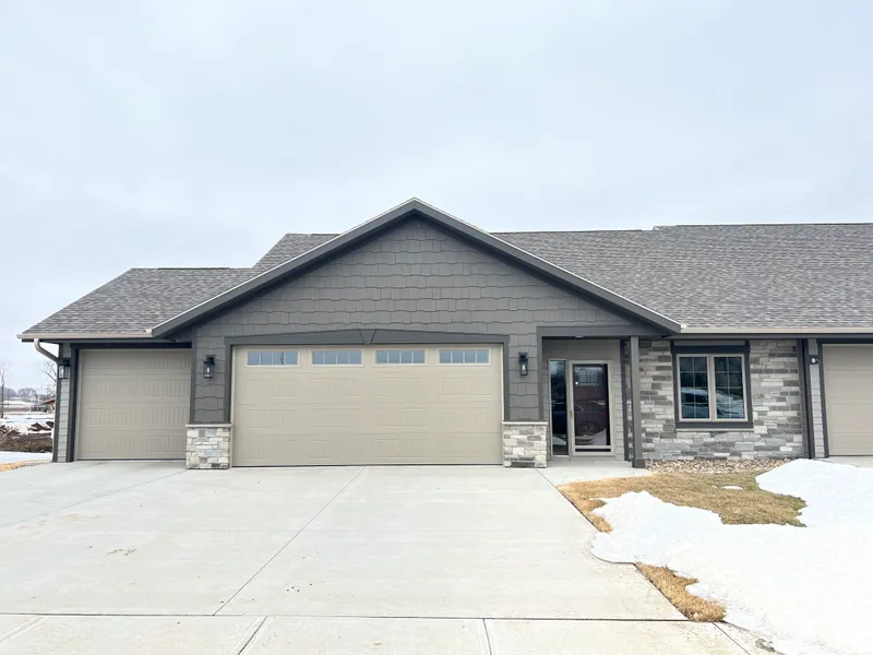Location and style best describes this quality built JW Tramp Construction twin home. Spacious design offering formal dining or living room, you decide. Open eat-in kitchen featuring Notty Alder cabinets, huge center island, granite counters and wood laminate flooring. Comfortable sunroom offering wonderful open views or step out onto your private deck and lower patio. Large living room with stone finished gas fireplace. Master bedroom has 2 closets, master bath with double sinks and walk-in tiled shower. Adjacent is the main floor laundry and ½ bath for guests. In the lower level you’ll find two more bedrooms; full bath; and a huge family/game room with wet bar, perfect for entertaining. The home includes solid core poplar doors, 3 inch millwork, 9 ft. ceilings, 2-zone heating (2 thermostats), sod, sprinkler system and landscaping. Make your move and be in this Spring!