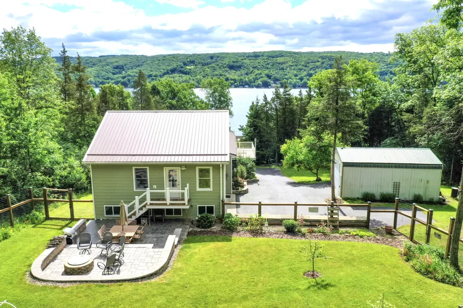 Keuka View-This gorgeous, 3-4 bedroom lake view home, which was finished in 2016 is "anything but routine". This gem sits on just under 2 acres, with all public utilities, master suite, 2 full and 2 half baths, attached 2-car heated garage, detached garage for your boats & toys, hardwood floors, gardens, decks, back patio w/fire pit, butler's pantry, and a kitchen for all to envy. Downstairs you will find a complete shop/recreational area, which is heated and even has a 1/2 bath. Just a short walk to the Marina where your boat might be docked. Showings to begin on Saturday (15th) commencing at an Open House from 1-3PM.
