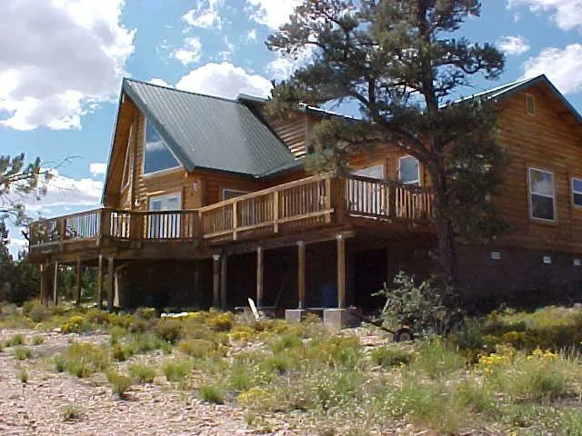 Custom Log Home: (builders Model) metal roof, log and knotty pine interior (including floors) 20 to 3 bedroom, 2 12 baths, loft area. Cathedral beamed living room, with gas heater fireplace. Super Large Country Kitchen, with large Island/wet bar. Stanless Steel Appliances. ( wine cooler). Large master suite 16x18, utility area, full house crawl space. Across house viewing deck 53x10! Totally self contained: solar 7kw, propane generator, windturbine. 5,000 gal water holding tank. Home is gas and electric, with on demand hot water system, wooded Lot on Hill with over 50 mile Views. comes furnished. Well under Recent Appraised Value! GREAT PRICE!!!