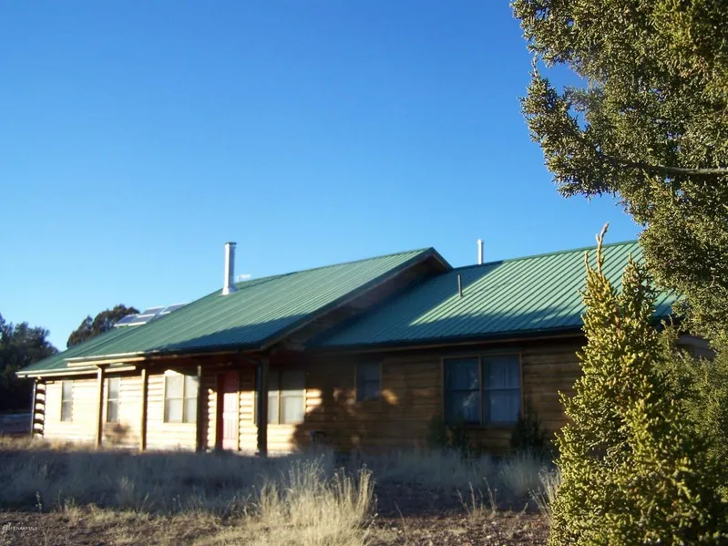 43 acres, Cabin with spectacular views. This 2 bed 2 bath cabin hosts a large great room with open floor plan that includes a bar and a dining area. The wood burning soapstone stove adds warmth but there is also a propane wall heater. The log sided home is 1300 sq. ft and has 2 master suites as both bedrooms are attached to their own bathrooms. There is a separate laundry room and an oversized 2 car garage. Each bath has tub with a shower and a large linen closet. The master bath has double sinks. The state of the art solar system has 7 solar panels/ 8-L-16 Trojan Solar storage batteries, a trace 3012 solar inverter, trace 60 amp load controller. The water pressure tank is a 60 gal. with up to 100 psi capability and a flotec water pressure pump. 2500 gal. water storage, home security sys.