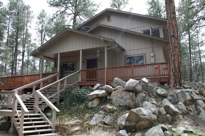 Escape to Prescott in this beautiful 4 bed 3 bath home. Nestled in the boulders and pines, yet close to downtown Prescott. Feeling like you're tucked away in the Pines, enjoy your expansive composite deck while watching deer walk by. Backed to the Prescott National Forest with a 10 minute walk to Goldwater Lake. Short drive to Prescott Town Square and shopping. Open living space, eat-in kitchen with a beautiful view of the forest. Propane fireplace in family room, with one bedroom and bathroom on the first floor. Three bedrooms and two bathrooms on the second floor, you'll have plenty of room for family and guests. Spacious living includes large wrap around deck, inside/outside living at its best. The 1.5 car garage has plenty of room for your toys! Schedule a showing today!