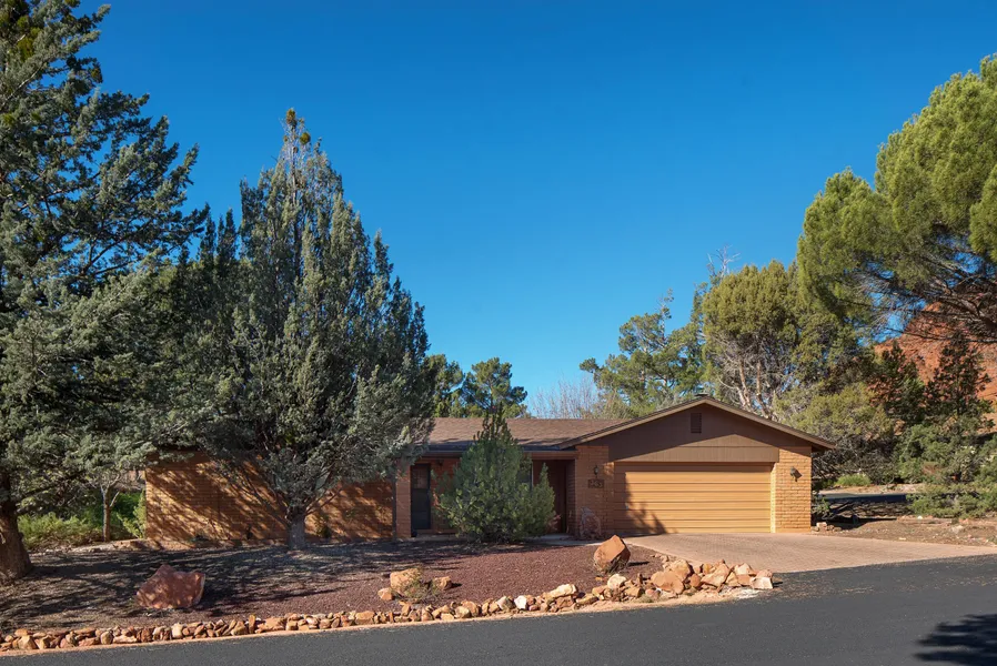 This West Sedona home has been lovingly maintained, and offers an ideal single-level floor plan sitting on a desirable corner lot. It is Move-In Ready with generous room sizes and an open floor plan, with a wonderful brick fireplace in the spacious Great Room and skylight overhead, right next to the spacious Arizona room with built-in book shelves and storage, both with lots of natural light. The kitchen and adjacent laundry room provide plenty of cabinet storage. The living room has a peak-a-boo view of Coffee Pot. The ample back porch area and large enclosed Arizona Room overlook the backyard, with a short walk to the National Forest. This is a very pleasing and attractive home with a great feel in an established neighborhood with very low HOA cost of $30 per year.