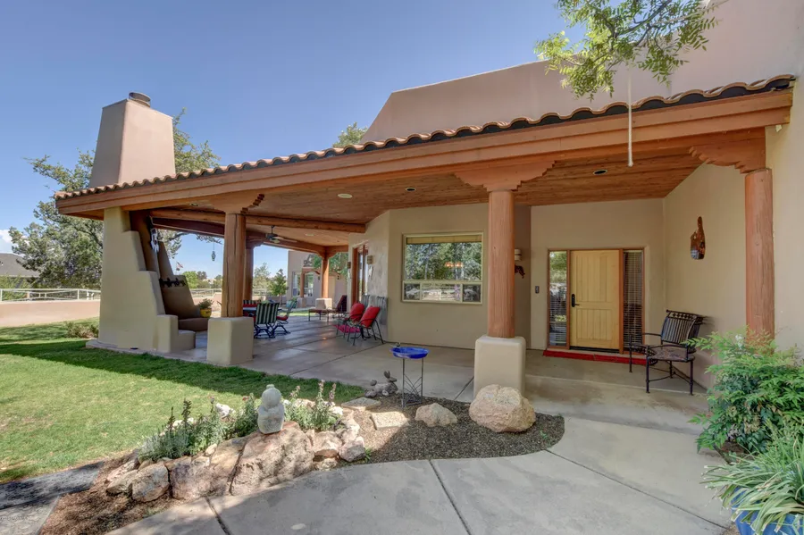 Welcome to this stunning Santa Fe style oasis in the fabulous Inscription Canyon Ranch community. Featuring 3 spacious bedrooms, 2 gorgeous baths, incredible tongue and groove wood working, 12ft ceilings, top of the line appliances, a detached casita, in ground hot-tub, private walled-in courtyard with water feature, landscaping on drip, fully fenced 2 acres, spacious kitchen with open concept living, brand NEW carpeting & paint throughout, large 3 car garage, reverse osmosis system, sound wired and more. Inscription Canyon is located just minutes north of beautiful Prescott, and boasts no HOA. You could add a barn or shop! Horses welcome! Kick back and relax in this one of a kind oasis just waiting for you to enjoy. Buyer to verify all info.