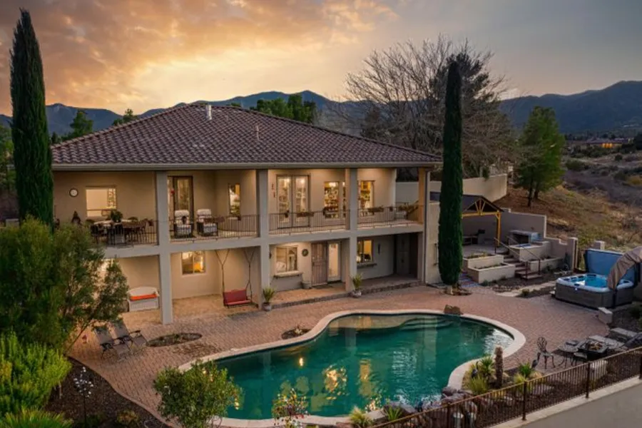 Extraordinary 4,218 square foot home on 2.44 private acres with incredible views overlooking Sedona's red rocks and the Mingus Mountain range. This luxury home offers its buyer incredible outdoor living, including a gorgeous swimming pool with a water feature and newer luxurious 10-person spa! An additional pergola patio with a built-in fire-pit. A garden area fully fenced with fruit trees and a beautiful mulberry tree. This home was remodeled with many upgrades. The main living level offers a spacious kitchen, dining area, great room, laundry, primary bedroom & bath, powder room, and outdoor entertaining deck. Lower level has a wine cellar, 3 bedrooms, 3 full baths, an office (potential bedroom), and large media room. Spacious 3-car garage with extra storage and full bath! RV parking...