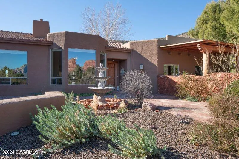 Amazing privacy & views at this beautiful Hacienda style home. Two new HVAC units in 2020, new roof 2023, new energy efficient windows in 2023, some new stucco & complete exterior repaint in 2023, Several new appliances added 2020 - 2023,SubZero fridge, top of the line Gas Range, new dishwasher, new washer & dryer. New water treatment system added in 2020, built in mixer in kitchen. Eat in dining & formal dining. One garage was converted to a large family game room. Two bonus rooms were converted to additional bedrooms by adding armoires for closets. Lots of outdoor living that backs to national forest land. Lap pool has covered hand rails at the stairs, a fire pit at poolside, gazebo for summer shade and a pool house.. Pool pump was replaced in 2023 & pool cover is powered. Wildlife frequent this private oasis, deer, javelina, bobcats, quail, roadrunners, etc. Fenced back yard has grass, outdoor dining including gas BBQ, small fridge & outdoor kitchen sink. Two outdoor covered patios one in front & one in back. The master has 1 small closet, another walk-in closet off the master bath & a large owner/cleaner closet. It also has three private seating areas & a walk out private patio that is plumbed for adding a hot tub. Master bath has walk-in shower, with dual shower heads & has steam settings. Also antique clawfoot tub and separate vanity areas. The 2nd smaller master has full bath with dual sinks, tub/shower combo. Center office was converted to a bedroom by adding an armoire for closet space. Formal dining has unblockable views. Formal living room has gas fireplace, eat in kitchen includes a breakfast bar & dining table, tv/video game room could be converted to another bedroom if armoire is added, another full bedroom with both regular closet & an armoire and another full bath. Two bathrooms have had grab bars added for safety. Landscaping is on irrigation system that was also updated in 2023. There is also a platform are for outdoor yoga workouts. This is a must see property to enjoy the awesome one of a kind experience.