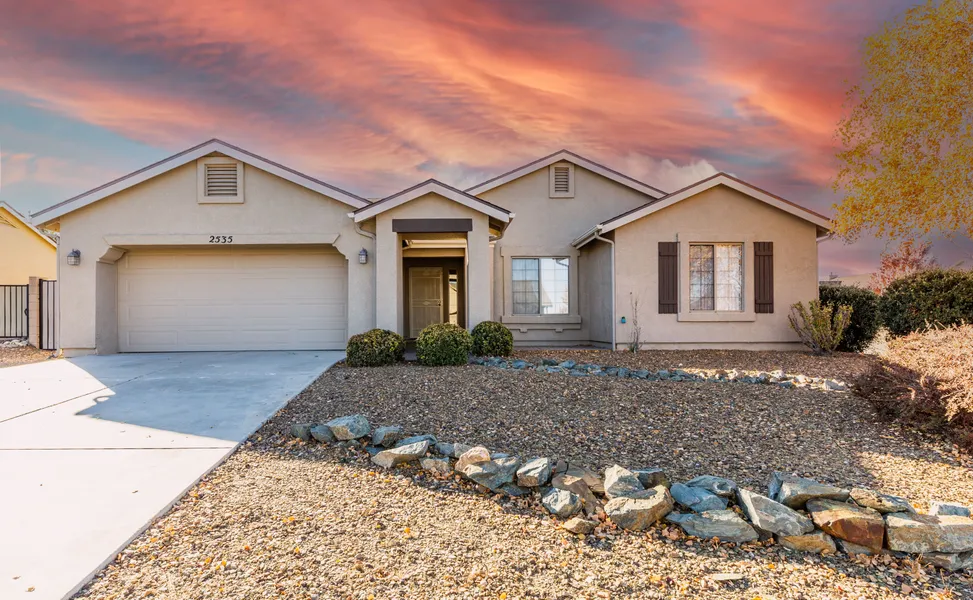 Welcome home to this lovely corner lot , move-in ready house. Covered front entry leads into beautifully tiled foyer. Featuring a spacious open floor plan with high ceilings. The custom stone veneered gas-log fireplace provides a warm ambiance, The kitchen includes a bay window with a dining area all on tiled flooring. Warm knotty alder cabinets include pull out drawers in base cabinets. Programable timer on re-circulation hot water system. Easy and convenient cleaning on tilt-in windows. Utility sink and workbench in garage. Fully landscaped front and back yard with trees on drip system and very low maintenance. Bright Star Storage, just outside the community is ideal for storing your RV.