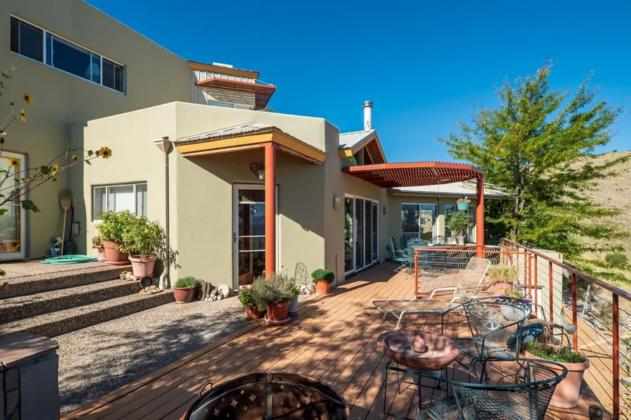 Welcome to your dream of sustainable living, beautifully encapsulated in this stunning property that redefines eco-friendly sophistication. This house, masterfully designed by Reynold Radoccia, promises not just a home but a lifestyle change nestled amidst the serene environment of Clarkdale, AZ. Offering a seamless blend of luxury and environmental awareness, the house features radiant floors, custom ash cabinets, and concrete countertops across a spacious interior exceeding 2557 square feet. True craftsmanship is evident everywhere, from the rich oak and pine plank floors to the stamped concrete across various rooms. Not to mention, it's all lit naturally through strategically placed skylights that ensure a sun-drenched ambiance. One of the only completely off-grid homes in the area.