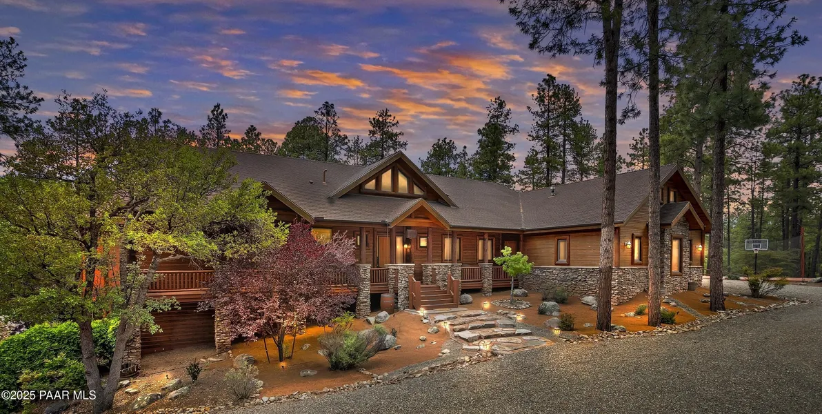 Major price improvement--now offered at $2,375,000. A truly one-of-a-kind lodge-style estate featuring a matching guesthouse and over 6,000+ sq ft of unforgettable luxury and space. Unmatched in character, scale, and lifestyle--there is simply nothing else like it. Welcome to Your Private Mountain Retreat - A Cozy Sanctuary in the Pines!Nestled on two pristine acres surrounded by majestic pine trees, this charming estate offers a perfect blend of luxury and tranquility. Designed for those seeking an inviting and serene lifestyle, this property is a haven for relaxation, rejuvenation, and personal fulfillment. Many improvements completed in the last year see attached list. Main Residence: A Warm and Elegant EscapeSpanning an impressive 5,600 square feet over three levels, the main home exudes timeless charm and comfort. At the heart of the home lies the breathtaking living room, crowned by soaring vaulted ceilings and anchored by a warm, inviting fireplace. Complementing this space is a gourmet Master Chef kitchen, impeccably designed with top-of-the-line Viking appliances, including a state-of-the-art Kobayashi grill, and generous counter space to inspire your culinary creations. Hickory wood floors and high-vaulted peeler pole beam ceilings enhance the cozy ambiance, while floor-to-ceiling windows flood the space with natural light and breathtaking views. The main-level primary suite is a personal retreat, complete with a cozy fireplace, a luxurious jetted tub, a spacious walk-in shower, double sinks, a massive walk-in closet, and heated bathroom floors. Lower Level: A Haven of Comfort and VersatilityThe lower level offers additional living space with a second ensuite bedroom, two more bedrooms, a full bathroom, and a media room perfect for movie nights. Also a large office room with great views of the backyard. A dedicated wellness area includes a workout room, creating a space to stay active and refreshed without leaving home. Guest House: Charming and IndependentA separate guest house adds charm and versatility to the property. With its own garage, kitchen, bedroom, and private deck, this space is ideal for visiting friends or as a rental opportunity for additional income. Carriage House and RV Storage: Space for Hobbies and AdventuresThe two-story carriage house is a dream for car enthusiasts or hobbyists, featuring an expansive garage and additional upstairs space for relaxation or creative pursuits. An RV covered storage area ensures plenty of room for your outdoor adventure gear. Outdoor Oasis: Peaceful and PicturesqueBrand new extensive wraparound decks provide stunning views and invite you to unwind in nature, surrounded by the soothing sounds of the forest. Recent exterior improvements, Many recent improvements on the outside and inside you will amazed. Location: Where Tranquility Meets ConvenienceThis serene retreat is just moments from the beauty of Lynx Lake, a 12-minute drive to Costco, and only 20 minutes from the vibrant shops and dining of Downtown Prescott. Surrounded by upscale homes on spacious parcels, it's the perfect blend of privacy and accessibility. Discover your peaceful sanctuary in Prescott, where cozy luxury meets natural beauty. This is more than a house - it's the retreat you've been dreaming of.