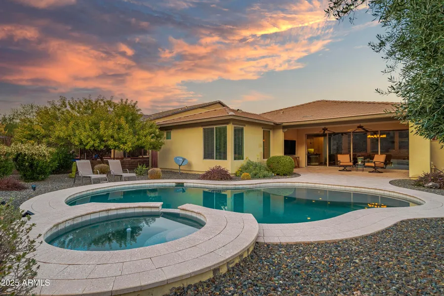 ''Unmatched opportunity! This is one of the lowest-priced home in Wickenburg Ranch with a pool—conveying fully furnished with décor for a true move-in ready experience. This stunning designer residence is tucked away in a quiet cul-de-sac, offering both privacy and luxury. Step outside to your private backyard retreat, complete with breathtaking desert mountain views, a sparkling pool, a relaxing spa, and a cozy outdoor fireplace—perfect for year-round enjoyment. Inside, thoughtful design and high-end finishes create a warm yet sophisticated atmosphere. Highlights include a 20' multi-slide glass door that seamlessly blends indoor and outdoor living, an elegant wine wall for enthusiasts and entertainers alike, a charming wood plank accent wall, and stylish tile flooring throughout!