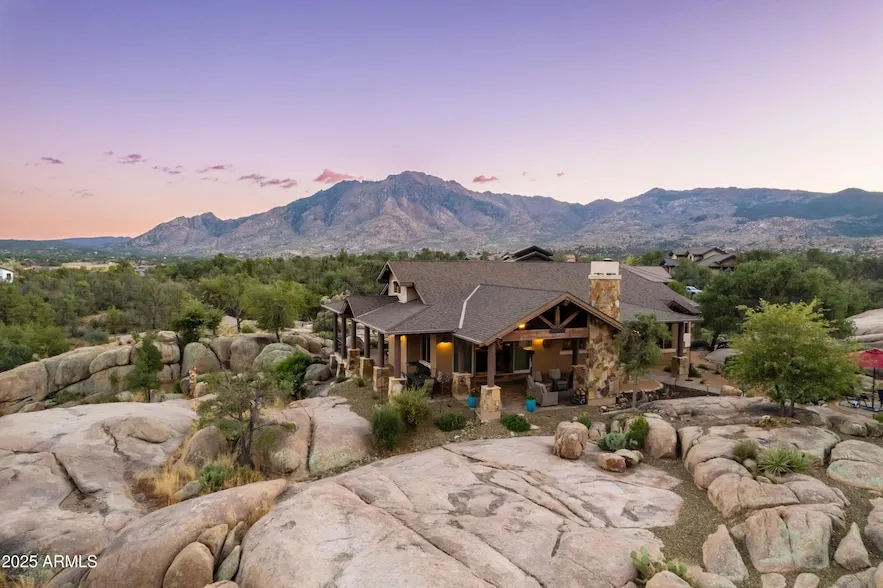 VIEWS, VIEWS, & MORE VIEWS from this incredible Custom Built 3452 Sq Ft Single Level home in Prestigious AMERICAN RANCH placed on a 1.6 Acre Lot covered w/a unique Boulder Plateau. Enjoy Spectacular VIEWS of Granite Mountain, San Francisco Peaks, & adjacent Boulder Outcroppings!! Enter a massive GREAT ROOM w/Beamed/Vaulted Ceilings, Peeled Pole Accents, 2 Tone Paint, 20'' Tile, Hardwood Floors, Stain Grade Baseboards, Doors, & Window Valances, Gas Fireplace, Stone Chimney Face, Formal Dining Room, Upgraded Lighting, Ceiling Fans, Open/Split Floor Plan w/3 Bedrooms, all w/en-suites + another 1 2 Bath / 3 Car Garage + Den/Office. Kitchen is well appointed w/Knotty Alder Cabinetry w/Dove Tailed Drawers, Soft Close Doors & Drawers, Chiseled Edge GRANITE Countertops, Lg Pantry, Under Cupboard... Lighting & Stainless-Steel Appliances - Thermador 6 Burner Gas Cooktop, Dishwasher, Wall Oven/Micro, Fridge. Primary Bedroom is Massive w/Coffered Ceiling, Dual Segregated Sinks under GRANITE, Garden Tub, Walk-in Shower w/Glass Block Radius Wall, & Enormous Walk-In Closet w/Built-ins. Other Amenities include an Impressive Brick Paver Driveway/Walkway, Wrap-around Veranda, Huge Paver Patio in rear w/Built In BBQ & Outdoor Gas Fireplace, Fenced - Raised Garden Beds, Zoned Heating/Cooling, Full Fire Suppression System, Central Vac, huge Laundry Room w/Upper & Lower Cabinetry, GRANITE Countertops/Folding area, Laundry Sink, & Washer & Dryer Convey. You will not be disappointed!