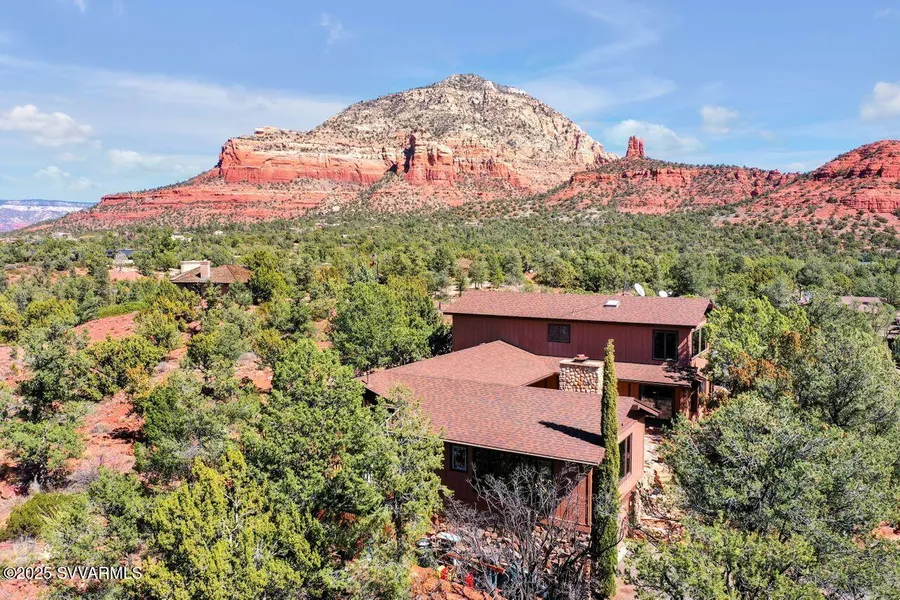 ACCEPTING BACK-UP OFFERS. Property is Vacant. Discover Your Dream Home in West Sedona! Nestled within the coveted Dry Creek Scenic Road area, this magnificent property offers a perfect blend of privacy, charm, and unparalleled beauty. Set on a private, serene 2.5-acre knoll, this spacious gabled allure of 3,200 plus square foot residence features 3 bedrooms, plus a den, and 3.5 baths, providing ample space for family and guests alike. As you approach, a long driveway leads you to this hidden gem, enveloped by mature trees and stunning views. An enchanting backdrop for your daily life at 130 Color Cove Road would be looking at Cockscomb Mountain, Doe Mountain, Bear Mountain, Boynton Canyon, Capitol Butte and don't forget Lizard Head the stepping stone to Thunder Mountain. The thoughtful and original design of this Sedona architecture has details to include a locally sourced stone, a design providing an abundance of natural light, windows showcasing red rock views and the forest. It has a naturally welcoming ambiance throughout the entire property inside and out! The double entry doors open and WOW you with a sunken living room and walls of glass displaying the Red Rock Views. The floor plan has a natural flow to the kitchen and dining room that also display the special unobstructed Secret Mountain Wilderness Red Rock views. The expansive deck invites you to soak in Sedona's breathtaking sunsets and the peaceful sounds of nature, while the property's generous size offers privacy and endless possibilities for your imagination and a front row seat to the wildlife! The luxurious upper-level master suite is the entire 2nd floor, boasting remarkable 360 Red Rock views creating a tranquil retreat you'll never want to leave. The special family room features a warm cherry flooring accented by a built-in book case, a huge stone fireplace and again with windows capturing the 360 Red Rock views, perfect for all family and friend gatherings. Access to trails and National Forest Service without getting in your car or using your trailer for your horses. This property is nestled in a quiet, sought out equestrian neighborhood on the West Side of Sedona. This rare opportunity to enjoy the best of Sedona living. In city limits but you feel like you are out in the forest!