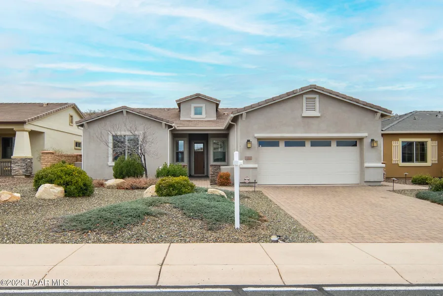 Beautiful single level 2BR + Office/2BA priced to sell in Prescott Lakes. Close to downtown Prescott restaurants, shopping, the county courthouse, hiking and so much more. Prescott Lakes offers an active lifestyle with golf, pickleball, tennis, restaurant and gym. As you walk through the home notice the open floor plan with 10' ceiling height, tile flooring, stacked stone gas fireplace and Office with French doors. The Eat-in-Kitchen features quality cabinetry, solid counters and stainless appliances. Extra large Master suite with walk-in closet, spacious 2nd bedroom and plenty of storage. Backyard features block privacy fence, professional landscaping, firepit, covered and open paver patio. Garage features epoxy flooring, storage racks and room for a small workshop