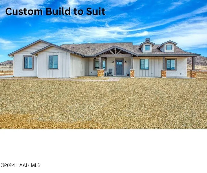 Custom Build to Suit with Amazing Views to Granite Mountain! Open floor plan with vaulted great room with full length Ridge Beam, wood burning fireplace, large covered front and rear patios for outdoor living. Note the custom beam accents on fireplace, near master, above bar area and near 1/2 bath. Eat-in Kitchen features a large island with sink, dining area, custom cabinets (throughout) soft close dovetail drawers, 36''/42'' stagger uppers. Two Guest bedrooms feature walk-in closets, private vanity with a shared lavatory and shower in between. Fourth bedroom can be used as an office. Large Master with huge walk-in closet, large shower, dual sinks and private lavatory.