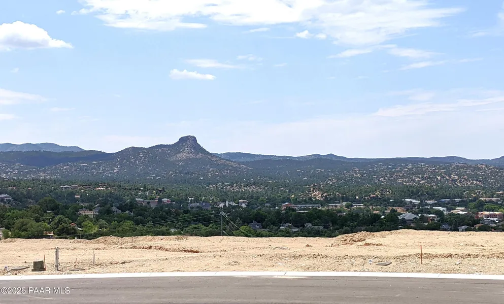 Nestled in the scenic hills of Prescott, this 1500 sqft gem embodies comfort and elegance. Designed with the popular ''Dells'' house plan with expanded living room, it boasts 2 bedrooms and 2 bathrooms, complemented by a spacious 2-car garage. Admire breathtaking views of downtown Prescott from the expansive windows throughout. The kitchen features exquisite granite counters, under-cabinet lighting, and soft-close cabinets. Enjoy seamless indoor-outdoor living with sliding glass doors leading to an extended full-length patio. The stone elevation and paver driveway add a touch of timeless charm to this inviting sanctuary.