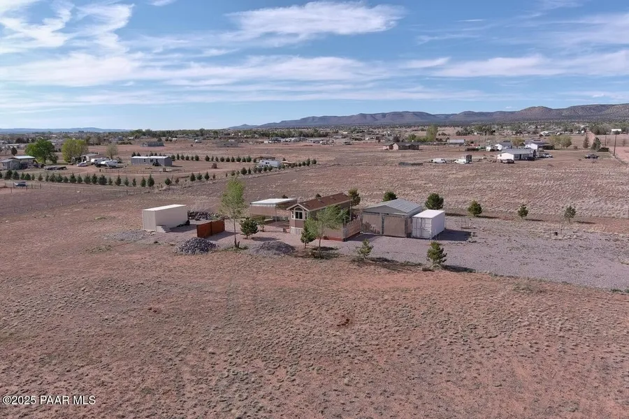 ***This is a beautiful Tiny Home with room to build, HOWEVER, it must be CASH or a CHATTEL LOAN - traditional financing will not work*** Enjoy gorgeous mountain views, privacy, and mature trees with irrigation on this fully fenced and gated 2.5-acre property. Live in the guest house/tiny home or build your new home and use it as an ADU. 30-year architectural shingle roof, desirable kitchen layout, upgraded Roxul insulation for lower electric bills. Too many extras to list! Many land development options! Bring horses, RVs, ATVs, motorcycles, and grow a garden! Existing home has Certificate of Affixation, and all structures are permitted by Yavapai County. Private well approximate 30 gpm. External 550-gallon emergency water tank conveys (needs connection). Septic approved for an additional house with up to 4 bedrooms. Excellent condition sealed metal shops, covered patio, courtyard, and 2-...