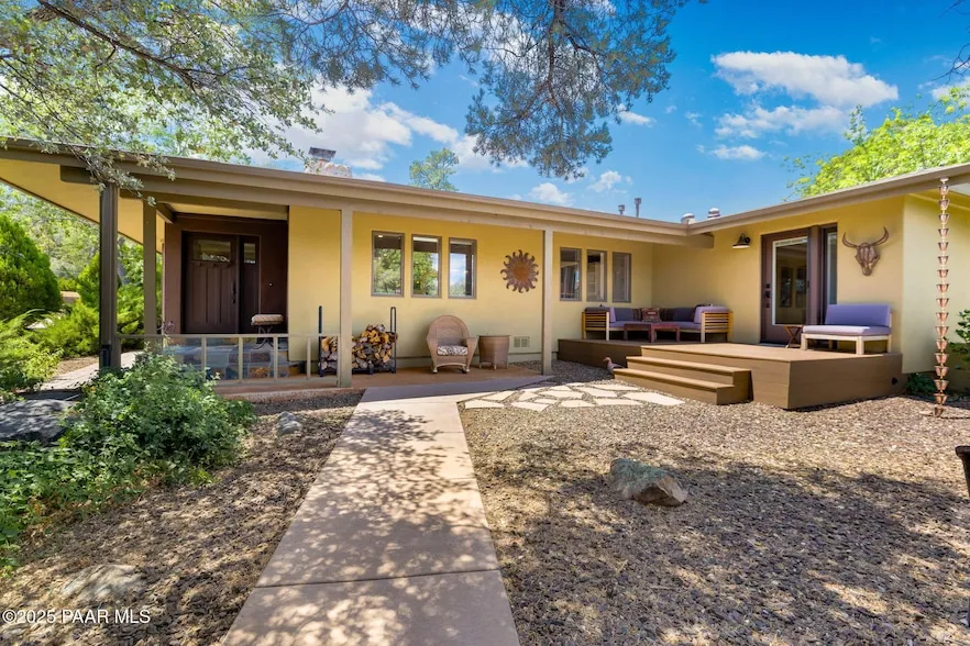 Welcome to your private estate! Just 3.5 miles from historic downtown Prescott, this one-of-a-kind 1.38-acre level, fenced estate offers a luxurious blend of privacy, natural beauty, and modern comfort, with no HOA. Nestled among dramatic boulders and lush landscaping, this meticulously maintained property includes a 3 bed (optional 4th), 3 bath main residence, a separate 1 bed, 1 bath guest house, and covered RV parking, making it a rare find in today's market. Main Residence - 2,128 SF, Single-Level Living, Beautiful cherry hardwood floors and custom woodwork throughout, including solid cherry doors, cove molding, and handcrafted casings.