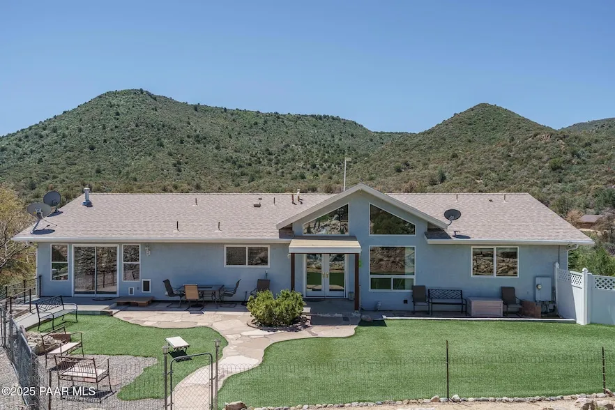 Nestled in the serene mountain community of Cherry AZ, this custom-designed home offers a rare blend of natural beauty and modern comfort. Boasting 4 bedrooms, 3 bathrooms, a bonus/game room, and a casita with its own full kitchen and washer/dryer, this residence is a rare gem. Upon entering, vaulted ceilings and Pella windows greet you, bathing the interior in natural light and framing breathtaking forest views. The kitchen, adorned with cherry cabinetry, crown molding, and granite countertops, flows seamlessly into the cozy family room featuring a fireplace and tall ceilings, perfect for relaxation. Outside, the home transforms into a private retreat with a hand-built pond, winding creek beds, charming paths among boulders, and lush greenery. Additional amenities include a recently