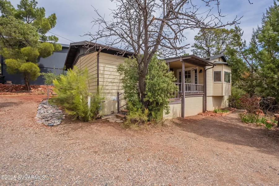Discover a rare opportunity to own two beautifully updated homes in a serene West Sedona cul-de-sac with Red Rock views and modern upgrades. This versatile property features a spacious 2-bedroom, 2-bath manufactured home and an adorable 1-bedroom, 1-bath guest house, offering endless possibilities for multi-generational living, a private retreat, or rental income. Many upgrades include new flooring, upgraded insulation, energy-efficient low-flow toilets, stylish blinds, and modern heating and A/C systems for year-round comfort. The main home includes a chimney, though the fireplace has been closed off for rental purposes. The guest house is a charming hideaway, approximately 390 sq. ft., featuring a bath, a newer ductless mini-split system, and a private fenced dog run, perfect for pet lovers. A large storage shed/workshop adds extra functionality to the property. Enjoy the ultimate Sedo...