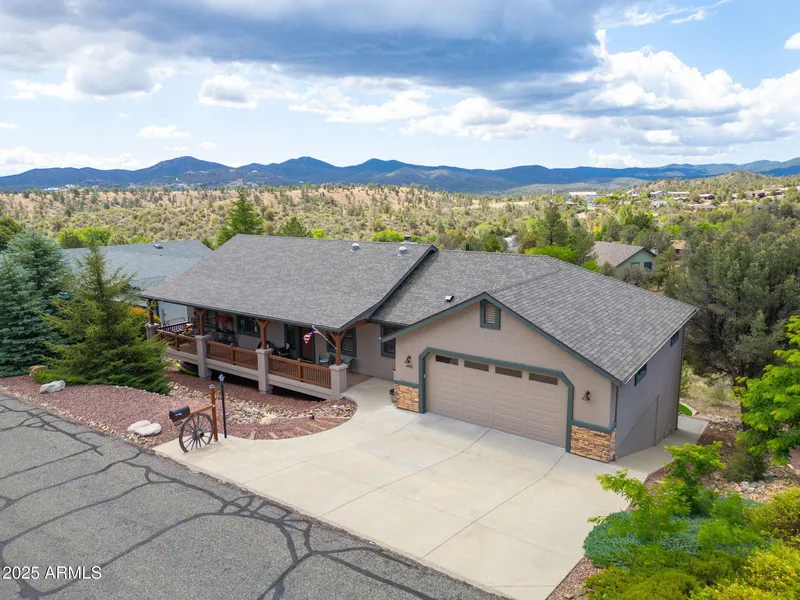 Entertainer's Dream Home in beautiful Yavapai Hills! This 2,639 sq ft home offers 3 bedrooms, 3.5 bathrooms, and bonus room that could serve as a 4th bedroom. Spacious family room featuring a beautiful stone hearth fireplace. Great kitchen with ample and attractive cabinetry and a center island with cooktop. Soak in BREATHTAKING PANORAMIC VIEWS from any of the 3 covered trex built patios.. The back patio is adjacent to a a 240 sq ft upscale bar room complete with fine cabinetry, granite countertops and undercounter refrigerators is ideal for outdoor gatherings. Downstairs takes you to the private separate entrance for a 1 bdrm, 1 bath unit with a large living room and kitchen area. perfect for multi-generational living, rental opportunities or entertaining! Lots of storage spaces through house. and an oversized two car garage with 9 ft ceilings. Backyard features easy maintenance artificial turf for games and sunning. Yavapai Hills offers a beautiful community with a plethora of natural greenbelts, a park, pickleball/tennis courts and updated clubhouse with many events for residents. This is a must see!!