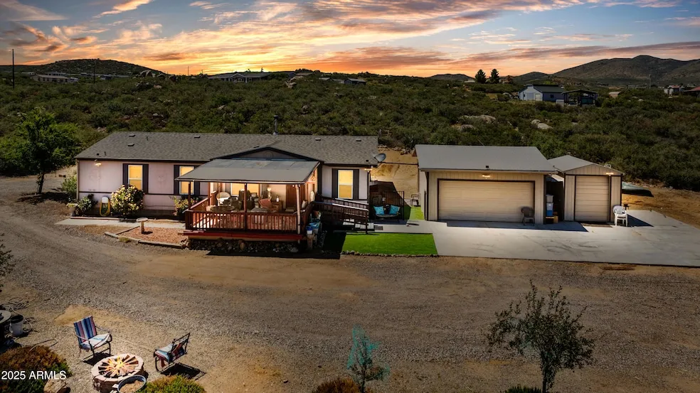Tucked away on a private, fully fenced 2.3-acre lot, this charming property offers the perfect blend of tranquility, functionality, & breathtaking mountain views. Set well back from the road, the home provides a peaceful retreat with expansive outdoor living spaces including a welcoming covered front deck & a quiet back porch ideal for morning coffee or evening sunsets. The home is securely set on a stem wall, making it eligible for all types of financing. Thoughtfully designed for both comfort & practicality, the backyard features a fenced area for pets, while horse lovers will appreciate the dedicated equestrian setup complete with a pasture, three stalls, a hay barn, & a tack room. Grow your own food with ease in two fully enclosed vegetable gardens engineered to keep your harvest... protected & thriving. Additional features include a rainwater system, detached 2-car garage, a 10x12 storage shed, a New roof 10/2024, & ample space to make the property your own. Whether you're looking for a quiet homestead, a horse property, or simply a lifestyle surrounded by natural beauty, this Whitehorse Ranch gem offers it all.