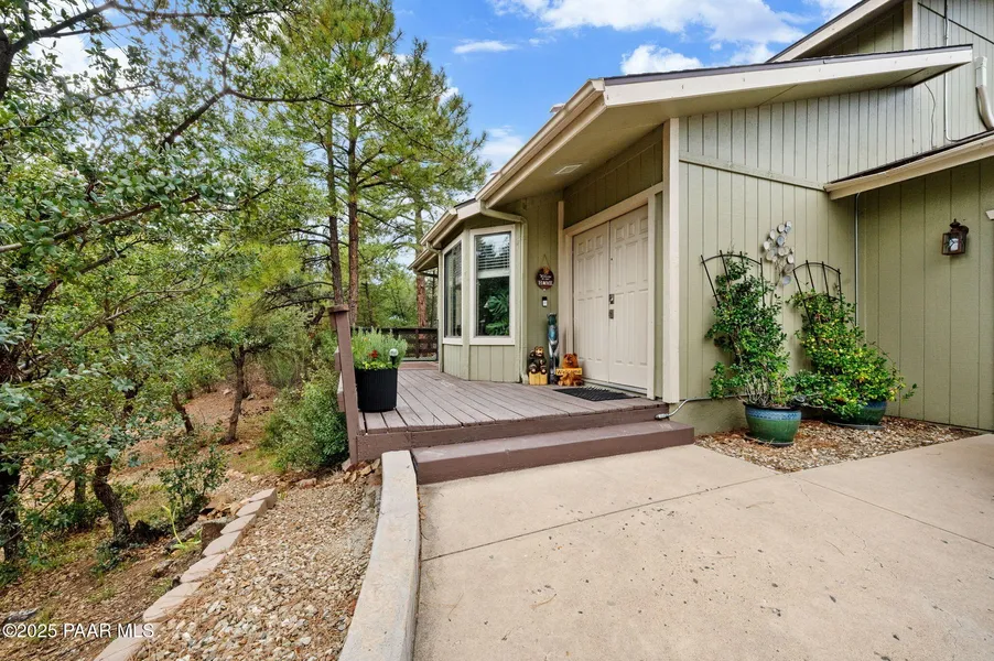 OWNED Solar-Powered Home on Large Fenced Lot - All electric home with an OWNED solar system. Minutes from Downtown PrescottThis is a unique opportunity to own a beautifully laid out solar-powered, SOLAR-OWNED home with multiple upgrades, and main floor living. This extraordinary 3 bedroom, 2.5 bath home features contemporary vinyl plank flooring, energy efficient AC/Heating splits, new conventional/air fryer oven and total yard drip irrigation. Situated on 2/3 of an acre in a fire-wise community, just 2.5 miles from downtown Prescott, it offers both privacy and convenience. The cozy primary bedroom is on the first floor, with two roomy walk in closets and sliders onto a spacious deck and enjoy the wilderness setting. Enjoy a double-sink bath with tub/shower combo plus full laundry for ultimate convenience. The kitchen features a breakfast bar that opens up to the dining area and vaulted-ceiling living room. Granite counter tops throughout add to the home's beauty. Upstairs, you'll find two spacious bedrooms--large enough for king beds--along with a full bath, ideal for kids or visiting guests. Outside, the fenced raised garden is perfect for growing your own vegetables, while the expansive fenced backyard provides a secure retreat for family, pets, and entertaining. Perhaps the home's best feature: solar panels that fully power the property, with the possibility of receiving a credit back from the power company each year. The house also includes four energy-efficient air conditioning splits, allowing for customized heating and cooling in individual munity amenities include a pool and tennis courts just a short walk away, and you're only minutes from the rodeo grounds, Capital Canyon Country Club, and all the dining, shopping, and entertainment downtown Prescott has to offer. Don't miss the chance to own this private, solar-powered gem--ready to be your forever home.