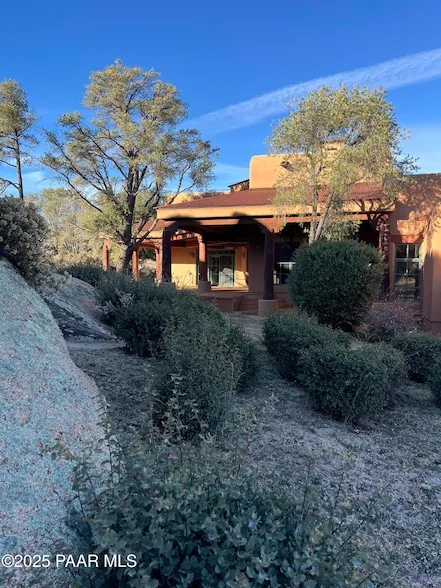 A Private Sanctuary in American RanchSet on 1.27 acres and seamlessly integrated into the natural beauty of American Ranch, this stunning Southwest Territorial custom home offers a rare combination of privacy, luxury, and energy efficiency. Backing directly to community open space and trail systems, the home is surrounded by dramatic granite boulders, native landscape, and tranquil views in every direction. With 3,607 square feet of thoughtfully designed living space, the main level features three spacious bedroom suites, each with its own ensuite bath. The primary suite is a true retreat, offering two walk-in closets and a peaceful connection to the outdoors. Grand living room showcases soaring 17-foot ceilings and a striking two-sided fireplace, perfect for both everyday living and entertaining. The kitchen is beautifully appointed with custom knotty alder cabinetry, brand-new Wolf appliances, and a Sub-Zero refrigerator, flowing seamlessly into the dining area and breakfast nook. Upstairs, a loft/game room, private office, and half bath open to an upper patio where breathtaking views of Granite Mountain and massive boulders create an unforgettable backdrop. Designed with sustainability and comfort in mind, the home includes solar, two geothermal heating and cooling systems, and dual water heaters. Recent updates include a new roof, fresh interior and exterior paint, new carpet, LED recessed lighting, epoxy garage floors, upgraded laundry cabinetry, new exterior lighting, and a prestige security screen door. The oversized three-car garage offers exceptional storage and space for full-size vehicles. A dog run, expansive usable land, and room for a future addition complete this extraordinary offering an exceptional opportunity in one of Prescott's most prestigious gated communities.