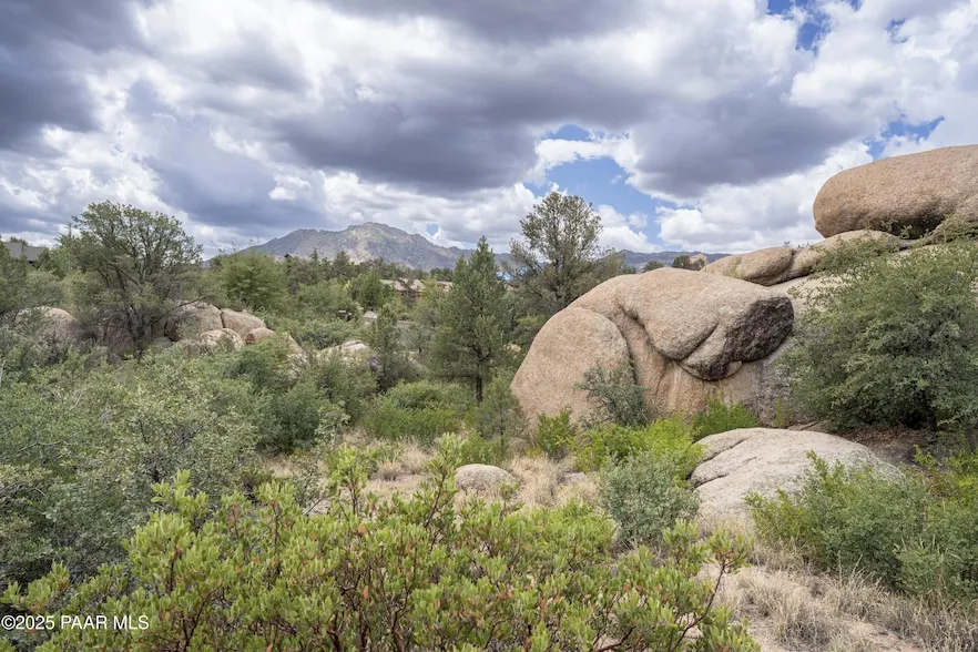 Excellent views, super location with boulders and trees, talk about a lot with character and also there is a Super build site towards the back, with stunning rocks and views, see attached plot plan on where the road would go and the best way to walk back to the build site. Wonderful privacy, set back off the road, own your dream mansion without everyone knowing it from the street. If you don't walk the lot you'll miss the truly amazing potential this has. American Ranch has so much to offer as Prescott's only equestrian HOA, don't miss this opportunity, Engineered site plan for driveway, utilities, and building pad are available for a 4000-5000 sq ft home with amazing outdoor living space are available.