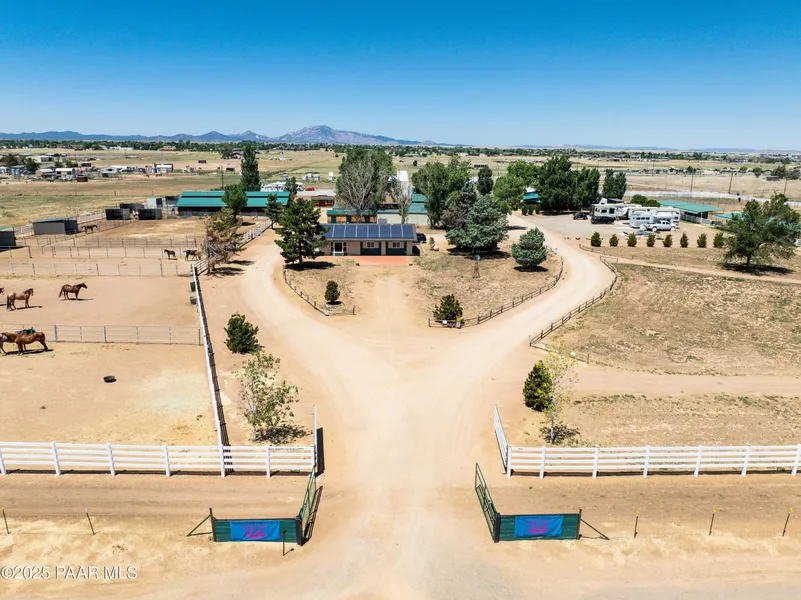 Exceptional opportunity to purchase a premier horse ranch and boarding facility - a rare 19.49-acre turnkey equestrian and RV income opportunity nestled in the heart of Prescott Valley, Arizona. Whether you're an investor, horse trainer, or equestrian entrepreneur, this fully operational ranch offers multiple revenue streams and room to expand. Currently operating at 85-90% capacity year-round, this well-established facility offers boarding, training, and 21 fully-equipped RV sites (all currently occupied) with water, power, and sewer hookups - creating consistent income and long-term potential. The property features:- Main Home for Ranch Manager - 3 beds, 1 bath- Tiny House for additional living or rental space- Main Barn - 10 stalls with runs- Office Barn - 4 stalls with runs- Mare Motel - 11 stalls + 1 bathroom- North Barn - 4 stalls with runs- Hay Barn & Tractor Building- 3 Separate Tack Rooms + 2 Grain Rooms- Dedicated RV Guest Bath/Shower/Laundry Facility- Two Large Riding Arenas + Two Round Pens- Perimeter Trail, Nearby Trail Access, and Dirt Road Riding- 3 Pastures + Horse Trailer Storage Area- Dog Park and Running SpaceWith two wells, electric, leased propane, septic, front and back gated access, and serene surroundings filled with wildlife, hummingbirds, and panoramic sunrises, sunsets, and starlit skies, this ranch offers the perfect blend of business and lifestyle. Located just minutes from town, yet a world away from the hustle, this beautiful turnkey ranch is your chance to own a thriving, income-producing property with authentic Western charm.