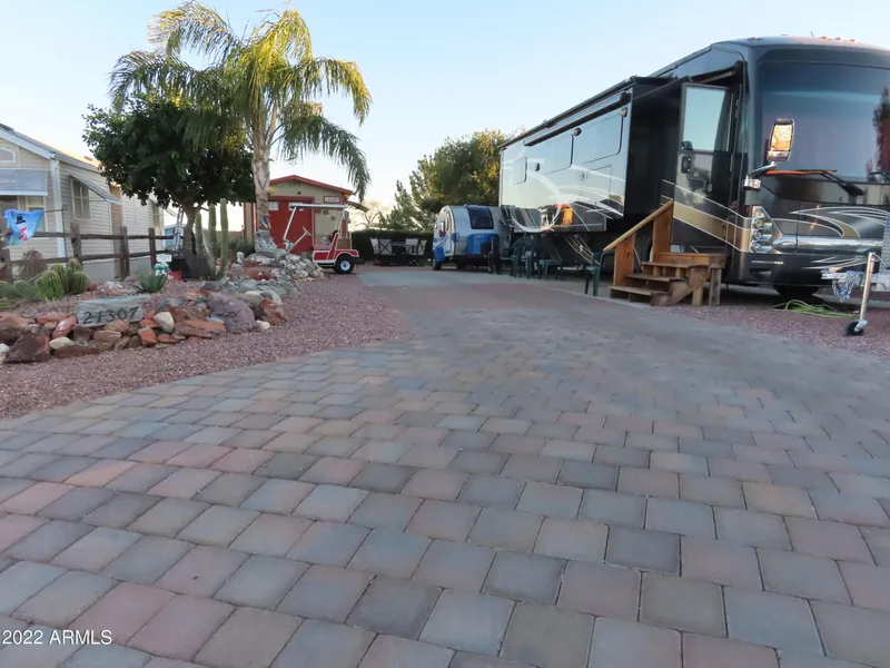THE BEST SMALL VACANT LOT IS NOW AVAILABLE!See this highly manicured small lot with Paver Patios, Landscaping built for you to Travel. Can take an oversized RV with room to park your car! Imitation GRASS to love does not need water, just a blower or broom once in a while. Full Hook ups. Shed is improved with shelves and a washer dryer hook up. It has a roll up garage door to park you atv in while you travel. Call to see this property now! Only one available.North Ranch situated in a Historic area of Hiking, Gold Mining and ATVing. Convenient ride to Phoenix or Prescott